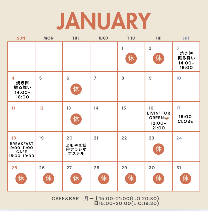 去年もお客さん同士お餅を焼き合ったりして穏やかな時間が流れていたので、今年も開催したいと思います!
